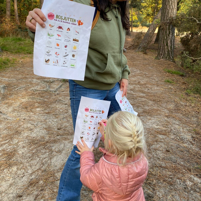 Wat is er leuker dan speuren in het bos? Met deze speurkaart van Vettt gaan jullie samen veel plezier beleven.