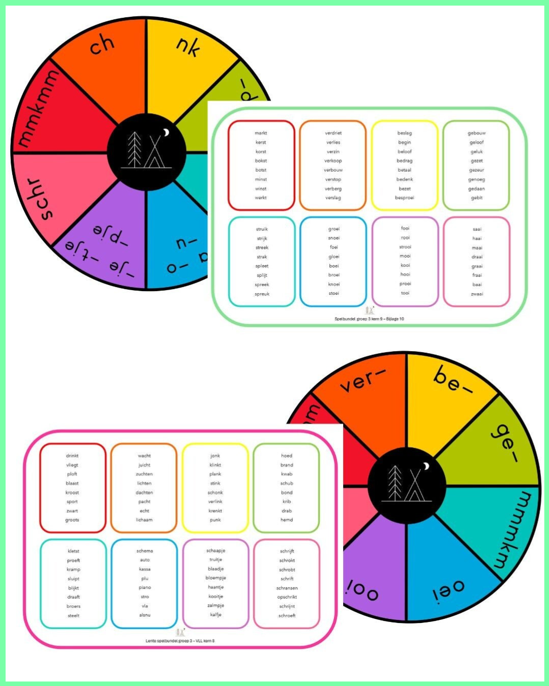 Kinderen zijn dol op spelletjes, maar ook op de kleuren van de regenboog! Speel het regenboog spinnerspel voor kern 8 of kern 9, waarbij de leerlingen met een spinner of potlood met paperclip gaan spinnen op een kleur (categorie). Op het leesblad lezen zij dan het woordrijtje van de kleur waarop ze zijn gekomen. Lukt het ze om in één keer alle kleuren van de regenboog te spinnen? Of duurt het eventjes en lezen ze een aantal woordrijtjes meerdere keren?